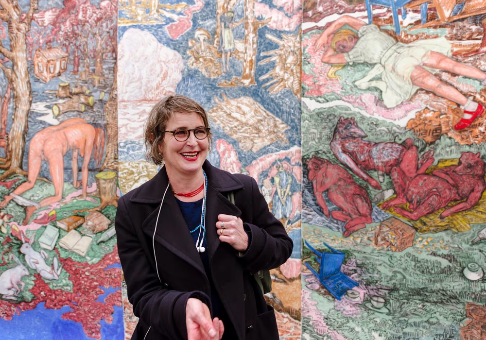 Marie Buskov lives and works in Oslo and was educated at the Royal Danish Academy of Fine Arts and the National Academy of Fine Arts in Oslo. She works with sculpture and paintings using various materials – from watercolour and tempera to stoneware, glass, bronze, and aluminum. Buskov has held several solo exhibitions, and has also completed several public art projects, the most extensive so far being Sola Church in 2020. Her works can be found in collections such as the National Museum of Art, Architecture and Design, Kunstsilo in Kristiansand, Lillehammer Art Museum, and the Oslo Municipality Art Collection. In 2024, she created the artwork for the Nobel Peace Prize diploma.