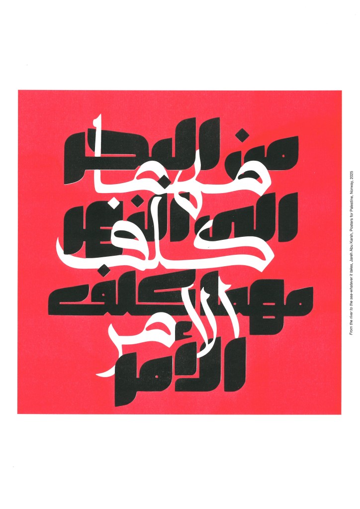 "Never has an A3 sheet of paper felt more important than for Posters for Palestine, and I am so humble and honoured to contribute to this project: A visual appeal for solidarity with the Palestinian people and for lasting peace in Palestine."