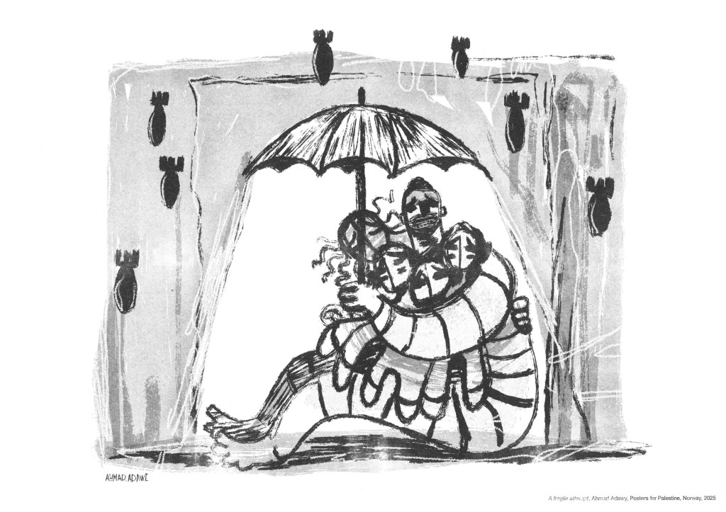 Ahmad Al-Adawi is born in 1983 and graduated from the Faculty of Fine Arts, and his artistic personality was shaped amidst the refugee camps in Gaza, where he witnessed the Palestinian popular struggle since the First Intifada. He was deeply influenced by the revolutionary graffiti and posters that adorned the camp walls, which led him to choose art as a means of expression and resistance. Al-Adawi began his artistic journey focusing on cartoon drawing and children’s and youth storytelling, and he was part of the founding team of a company specialized in producing animated films. Despite this, his work in cartoons continued until the company was destroyed due to the war on Gaza.