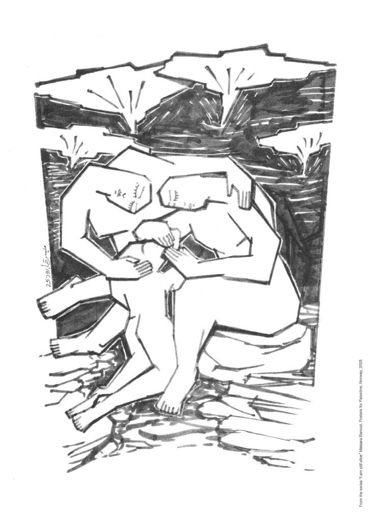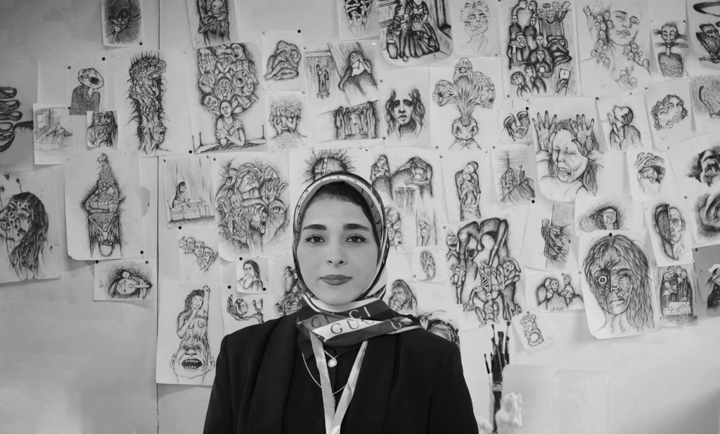 “I am a visual artist, born in 2001 in Gaza, Palestine. I grew up in Rafah and spent my youth in Gaza City, where I began practicing art from a very young age. I studied Graphic Design at the Gaza Training Centre (GTC), and for me, art has always been a way to process, survive, and tell stories.